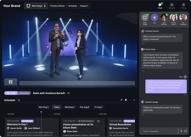 Jumbo builds fully functional community hubs for live streaming online events. We do it all so you can focus on your content. Let Jumbo handle ticketing, broadcasting, and audience engagement to give your viewers a show they’ll never forget.