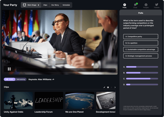 Activate your audience through creative polls & quizzes via Jumbo’s own tools or our Slido integration.