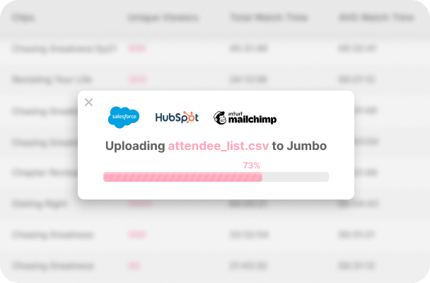 We can build in any existing tools you use or try out our native options. When it comes to registration, upload existing attendee lists, or sync directly from your CRM of choice.